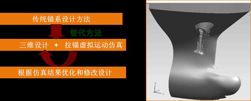 經(jīng)過與國內(nèi)行業(yè)權(quán)威設(shè)計(jì)院的合作過,并將該技術(shù)應(yīng)用于船舶建造中,對錨鏈筒、錨臺、錨唇、錨穴、錨、錨鏈、錨機(jī)、止鏈器、導(dǎo)鏈滾輪、船體等進(jìn)行三維設(shè)計(jì)和自動建模,實(shí)現(xiàn)了三維錨系計(jì),保證了錨系設(shè)計(jì)中空間位置定位的準(zhǔn)確性,并通過三維軟件導(dǎo)出二維CAD圖紙,扭轉(zhuǎn)了一直以來二維圖紙與船廠錨系施工脫節(jié)的局面,極大提高了錨系設(shè)計(jì)的效率。除此之外,利用軟件的后期的仿真功能,模擬并預(yù)報(bào)收錨過程的動態(tài)效果并給出調(diào)整方案。